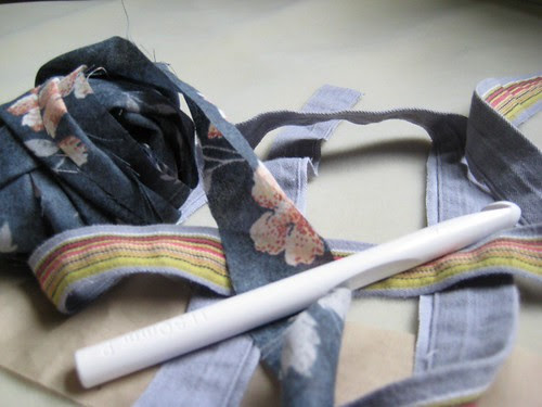 I bought some used window treatments at the thrift store and cut them into strips: